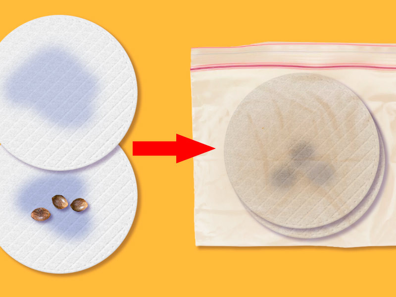 Перед выгрузкой семян необходимо пропитать базу водой. Губки, салфетки или субстрат сначала проливают, а затем лишнюю влагу слегка отжимают (не сильно). Семечко укладывается между губками или дисками по принципу бутерброда. Таким образом получается оптимальная теплая и влажная среда со всех сторон. Проращивание в губках называется методом Санчеса.