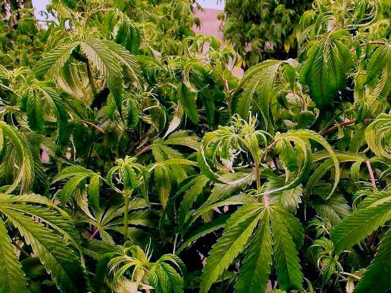 Внешне симптомы похожи на недолив, но с этой проблемой разобраться намного проще. Перелив может нанести марихуане непоправимый ущерб, что, естественно, отразится на урожайности куста и качестве конечного продукта. Переизбыток влаги характерен для индорного культивирования. В открытом грунте лучше дренаж и интенсивнее испарение, что позволяет сохранить водный баланс.